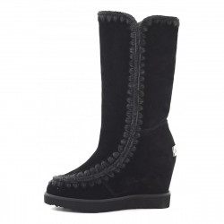 The feminine shape of the French toe wedge represents a beautiful style to suit any outfit, from shorts to an elegant dress. Expertly crafted with handcrafted crochet stitching on premium nubuck leather, this model is fully lined with soft sheepskin, making them warm, stylish and supremely comfortable. The flexible rubber and EVA sole is durable and practical for winter temperatures. Handmade with a 7 cm inner wedge that cushions the heel. Boot height 28 cm. Regular fit.