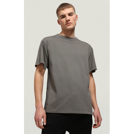 The iconic Bikkembergs tape takes on a bon ton edge on this men's T-shirt made of garment dyed cotton, a colouring technique which gives the garment a unique look. Wear the shirt for sports activities, with all of the sweatpants in the collection, or during down time, paired with jeans or to offset the formality of sartorial trousers.